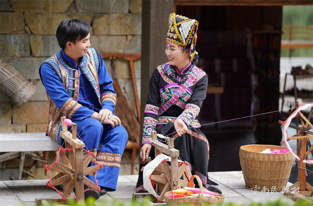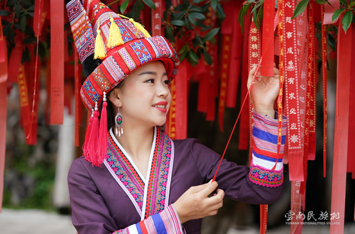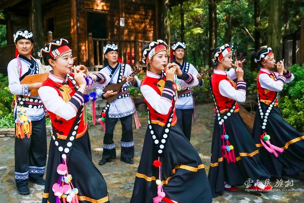 彝族在云南境內(nèi)約471萬人,是省內(nèi)人口最多、分布最廣的少數(shù)民族,主要聚居在金沙江、元江流域和哀牢山、無量山腹地。彝族是一個(gè)能歌善舞的民族,民間打歌、跳樂之風(fēng)盛行,大三弦、跌腳舞久負(fù)盛名。火把節(jié)是彝族最具特色的民族節(jié)日。彝族村占地50余畝,三虎浮雕墻與虎頭內(nèi)祖師形象表現(xiàn)了彝族虎鷹文化。太陽歷廣場圖騰柱上有太陽、虎、火和八卦圖形象,周圍環(huán)繞著10個(gè)朝向不同的月球造型,外圓周有12生肖石雕。依山而建的“...