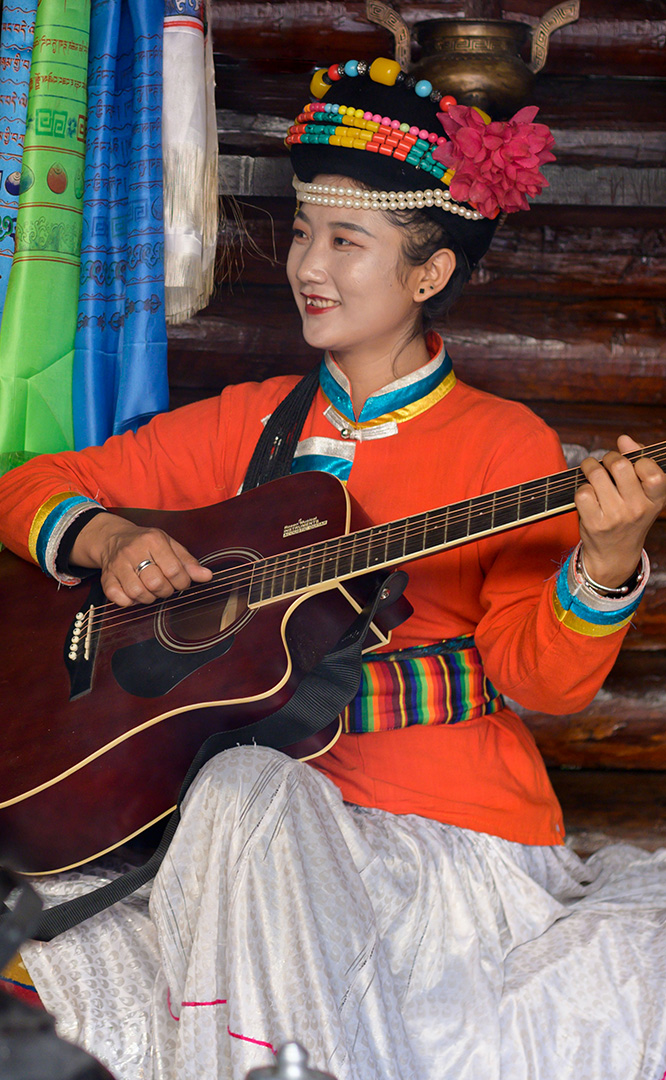 摩梭人是納西族的一個(gè)支系,多聚居在寧蒗縣永寧鄉(xiāng)的瀘沽湖畔,人口約8萬。摩梭民居就地取材,用圓木橫壘為墻,建成合院式寨樓居住,這類井干式建筑又稱木楞房,具有較好的御寒保溫性能,體現(xiàn)了順應(yīng)自然的生態(tài)觀。摩梭人保留了母系大家庭的基本形態(tài),呈現(xiàn)在您眼前的是一個(gè)完整的摩梭家庭的四合院,由正房、經(jīng)堂、花樓、門樓等構(gòu)成,正房坐北朝南,通稱祖母房。居住一家中最年長的女性,同時(shí)也是一大家人飲食、待客、議事的核心場所...
